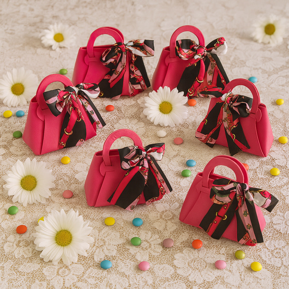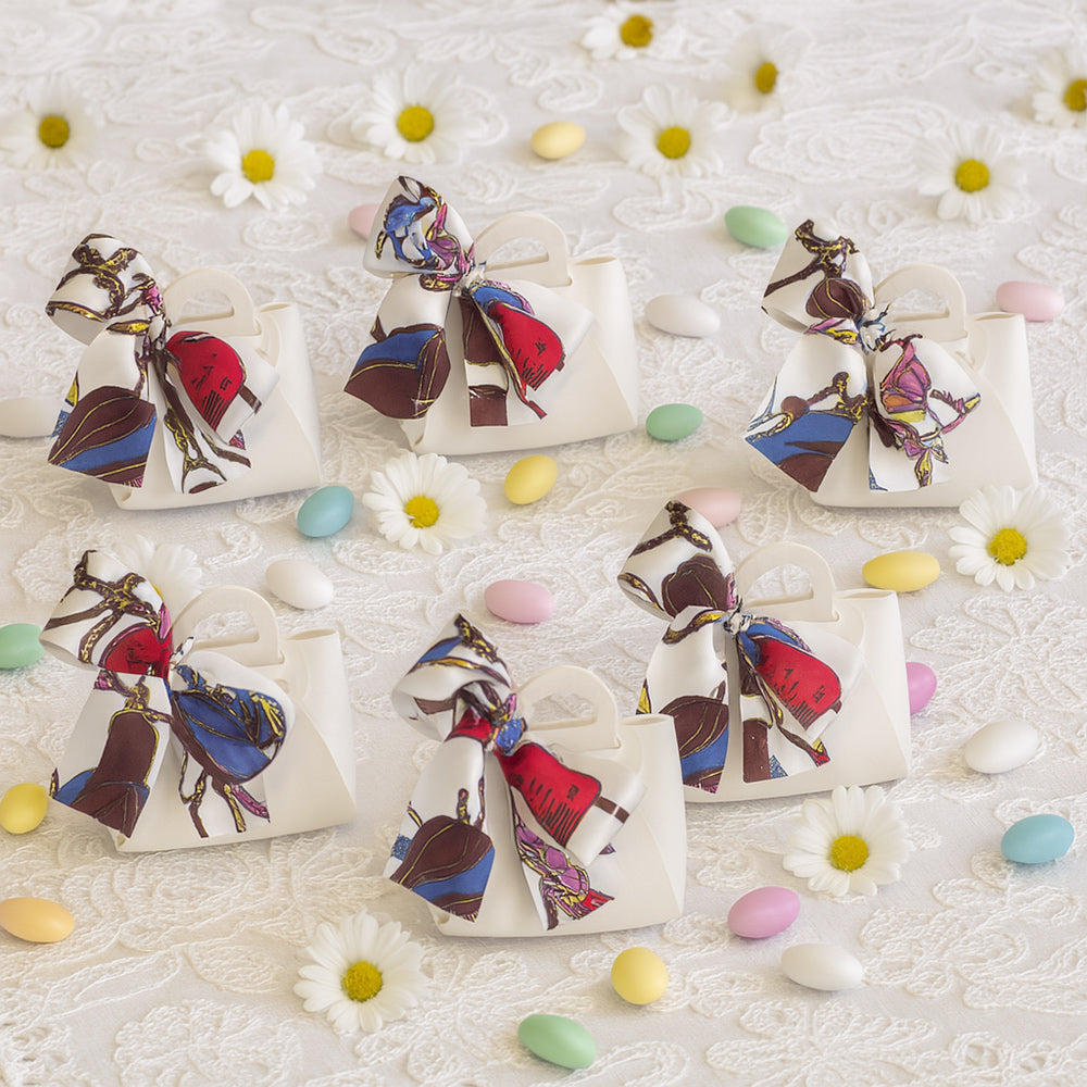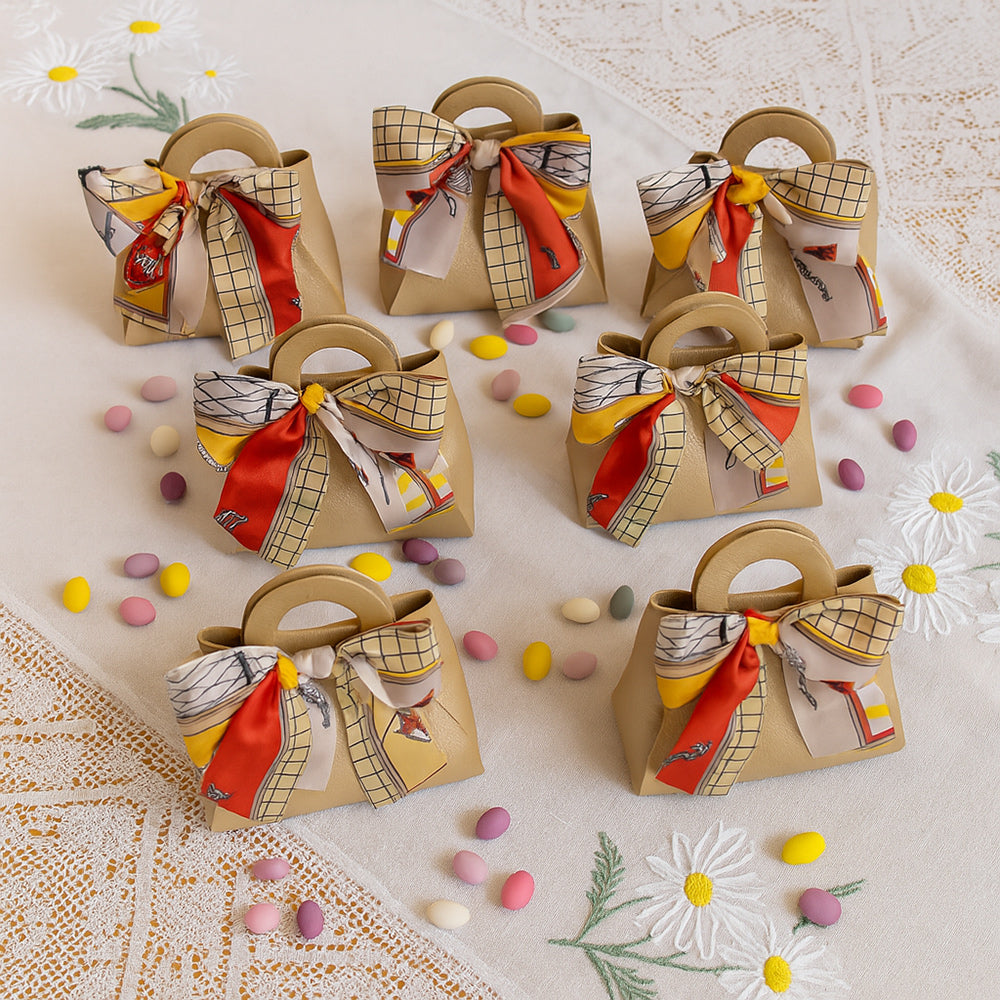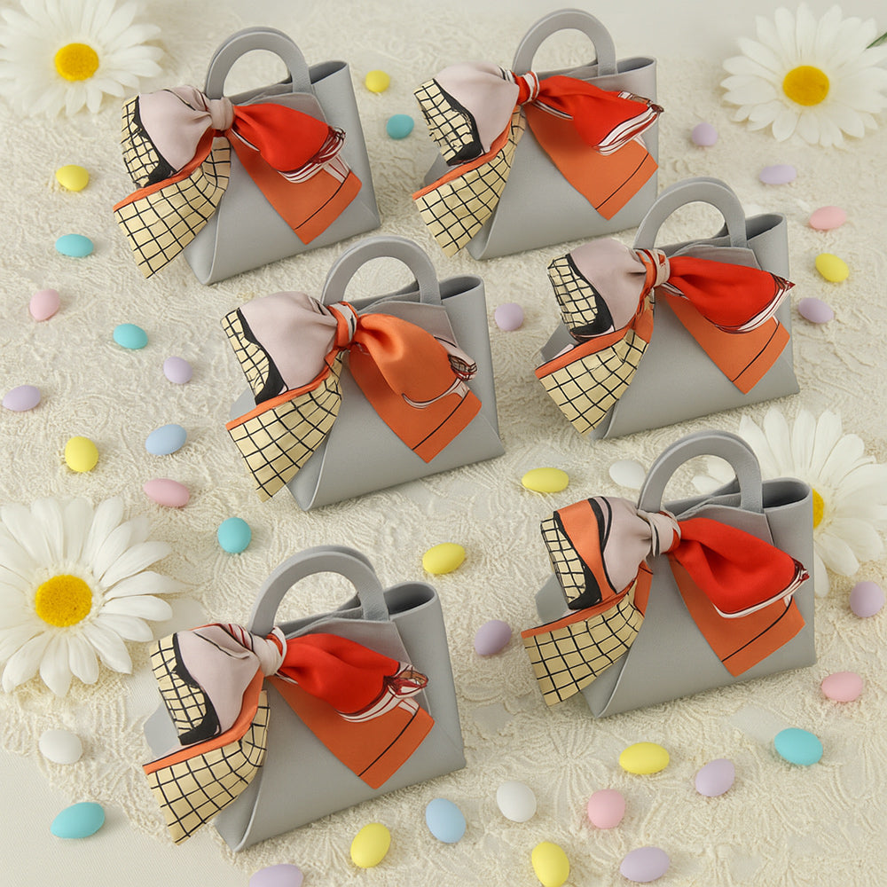 6 bomboniere a forma di borsetta con foulard portaconfetti per eventi