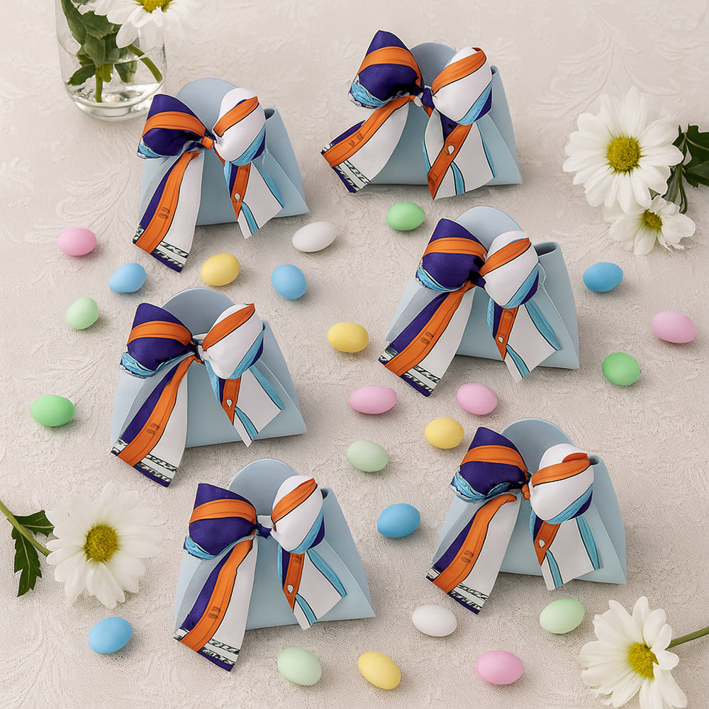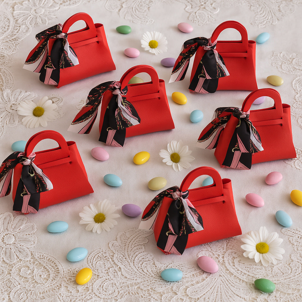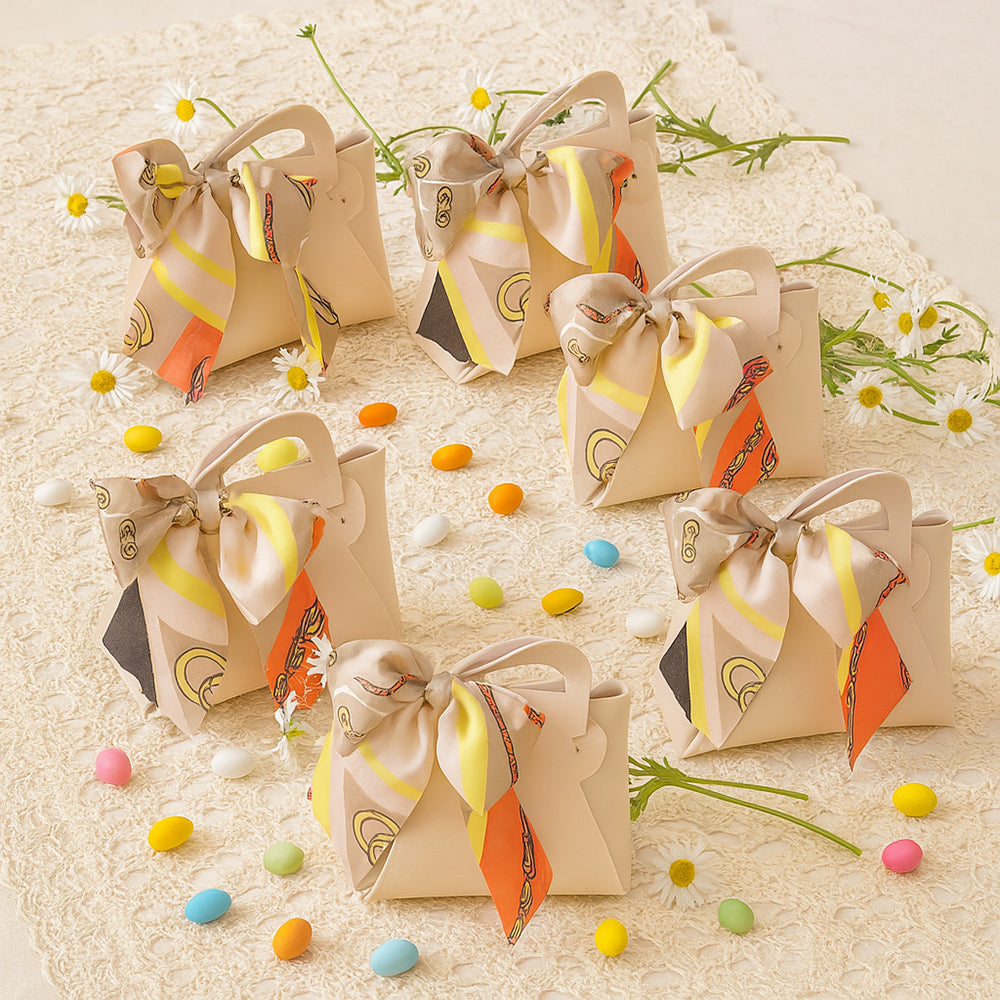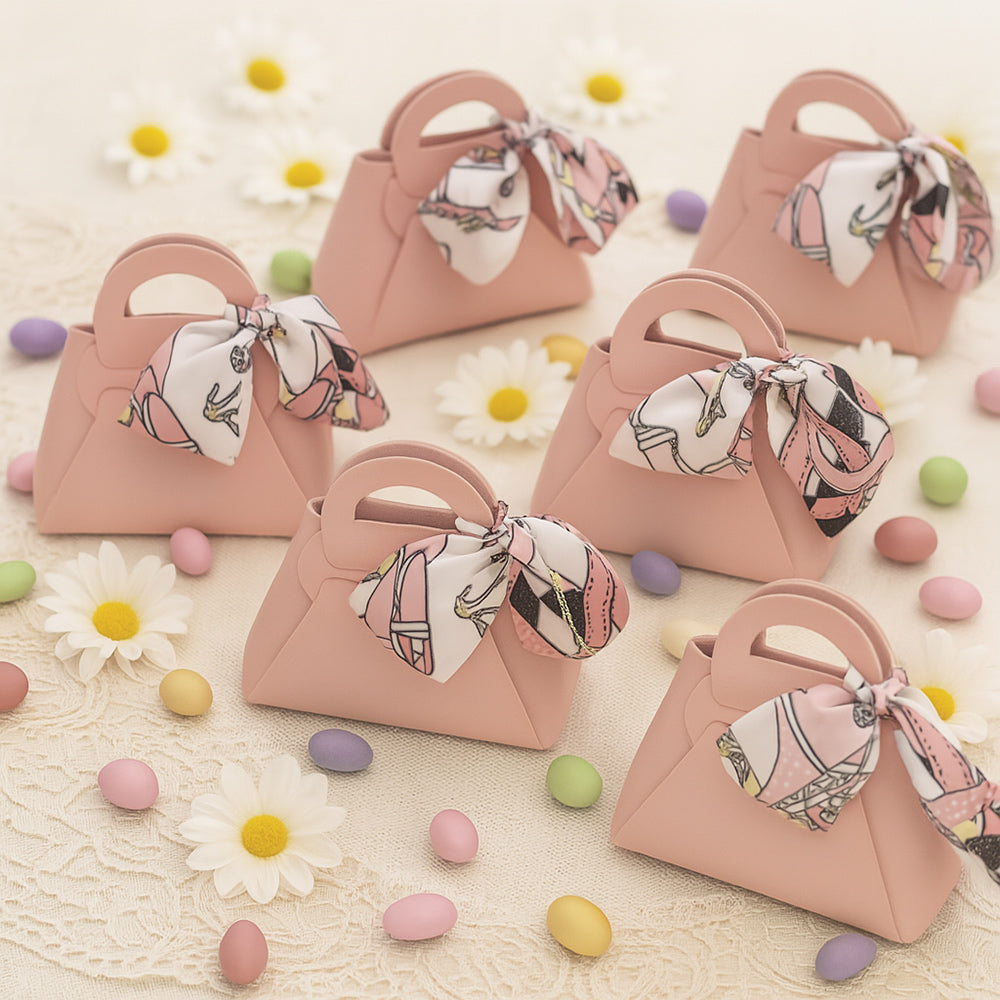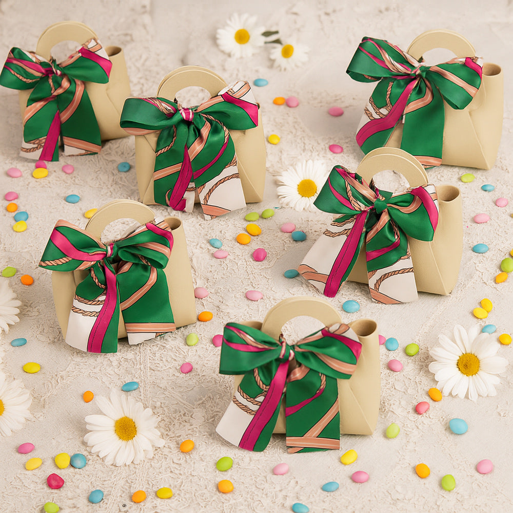 6 bomboniere a forma di borsetta con foulard portaconfetti per eventi