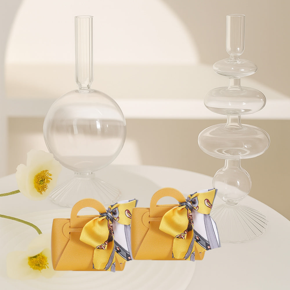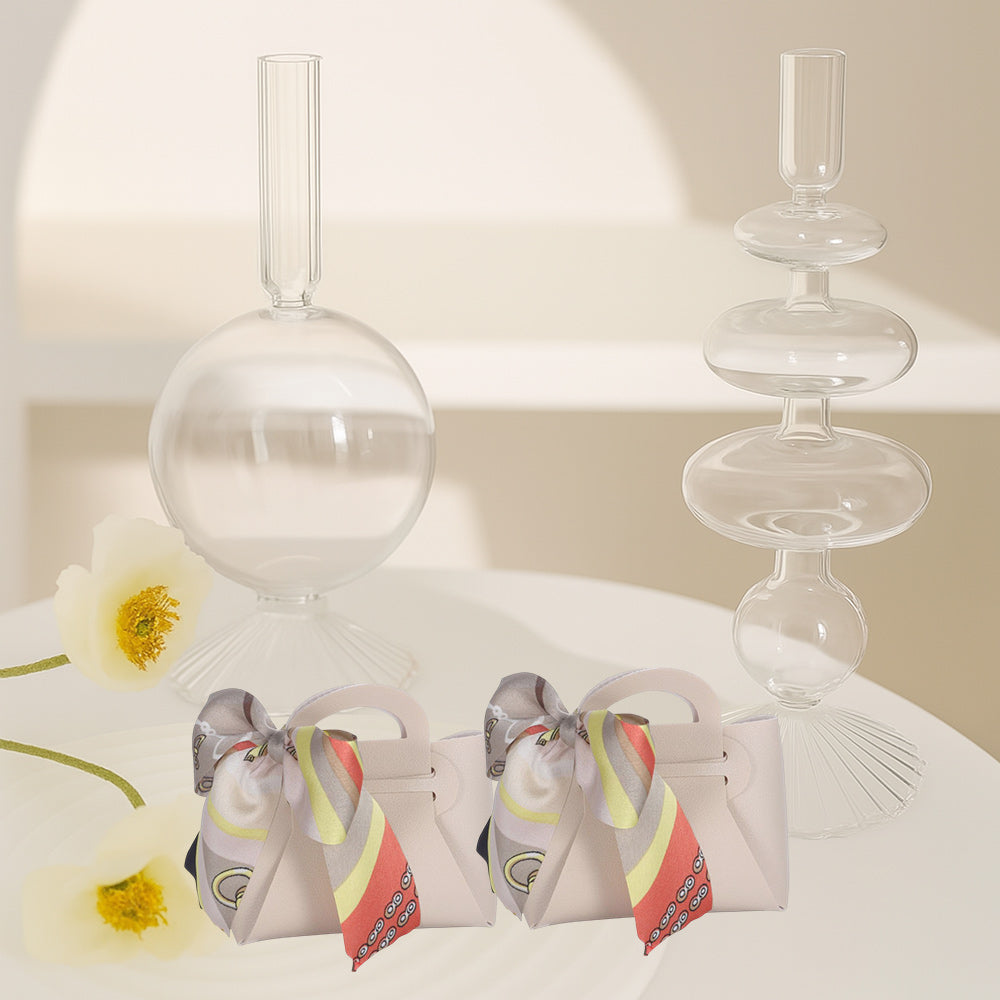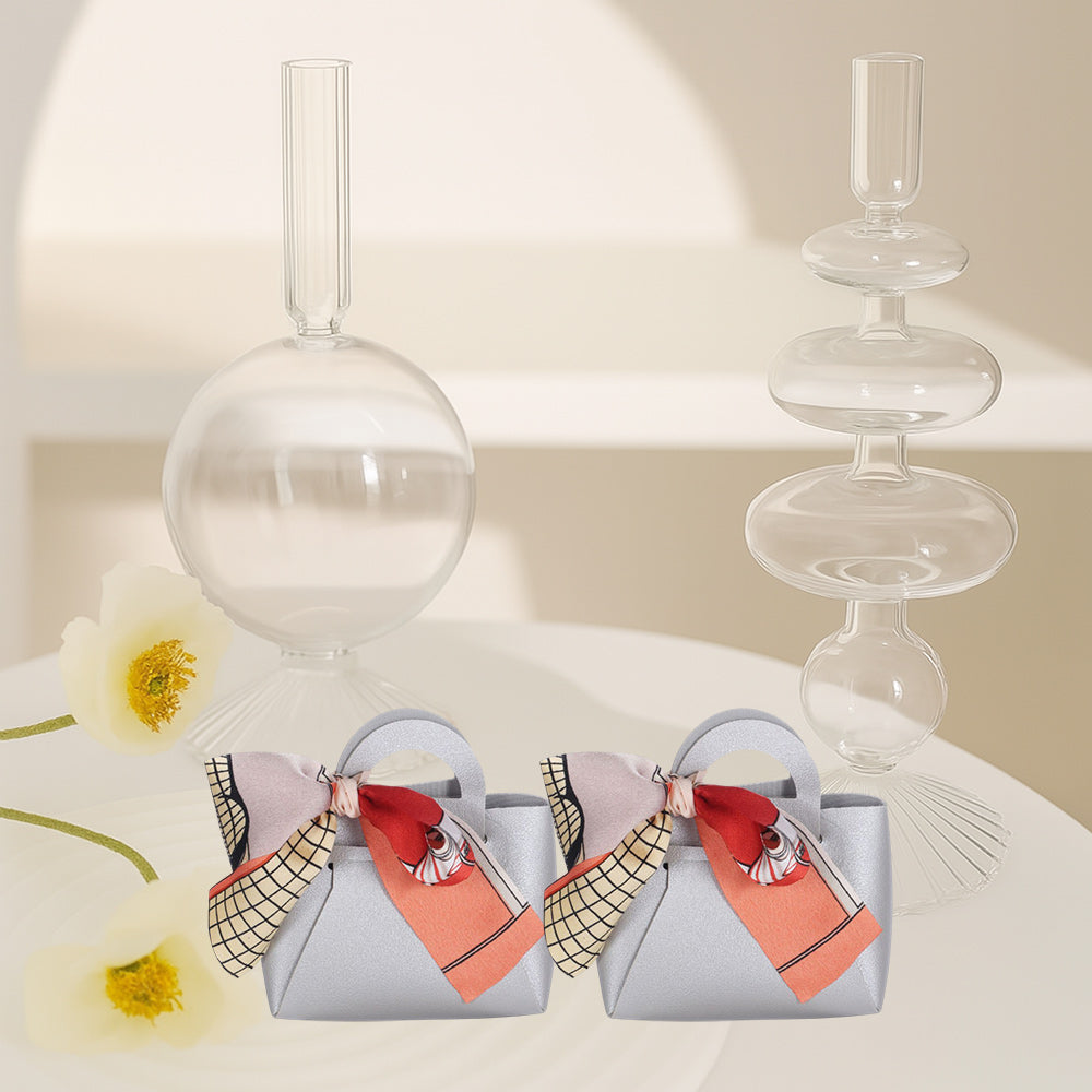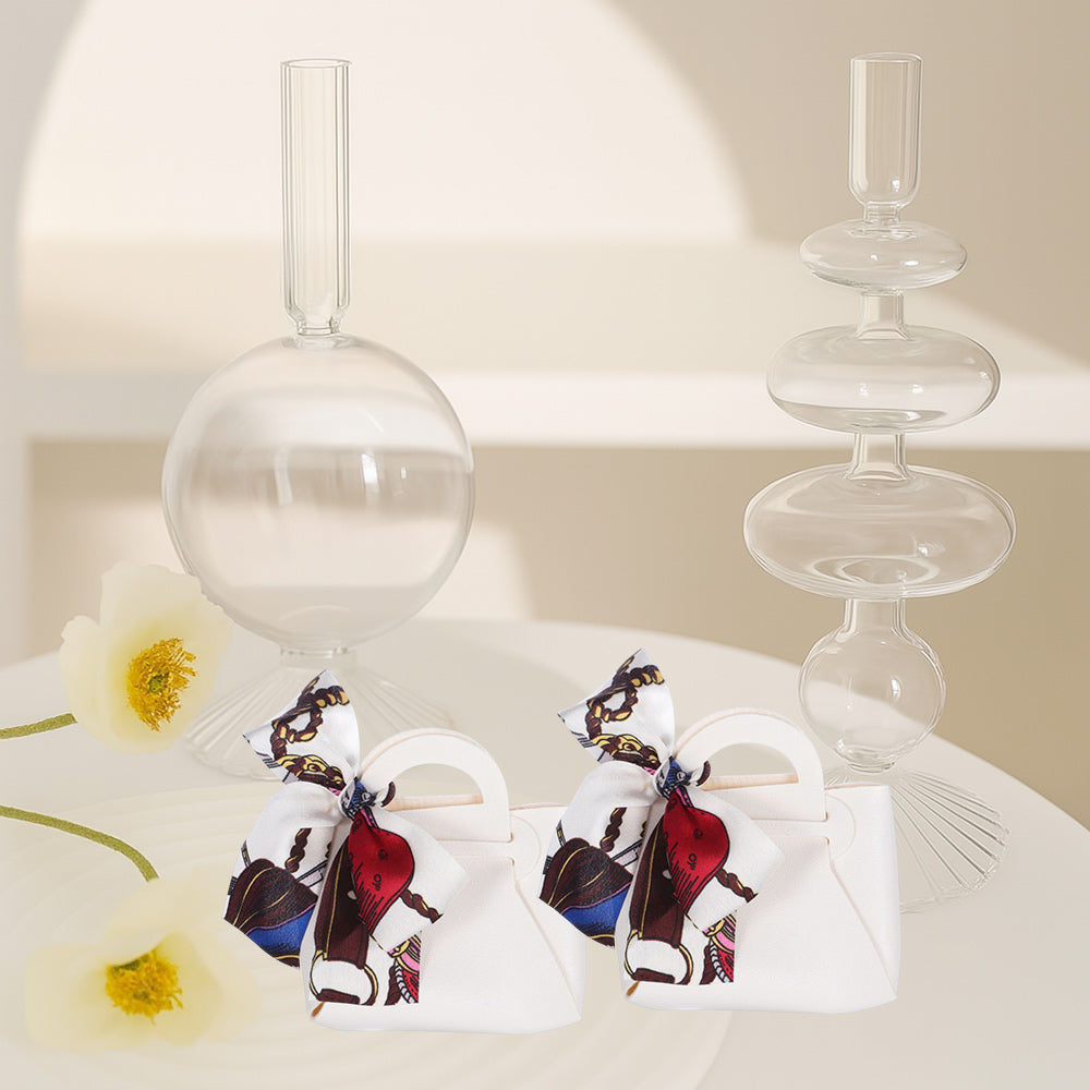 6 bomboniere a forma di borsetta con foulard portaconfetti per eventi