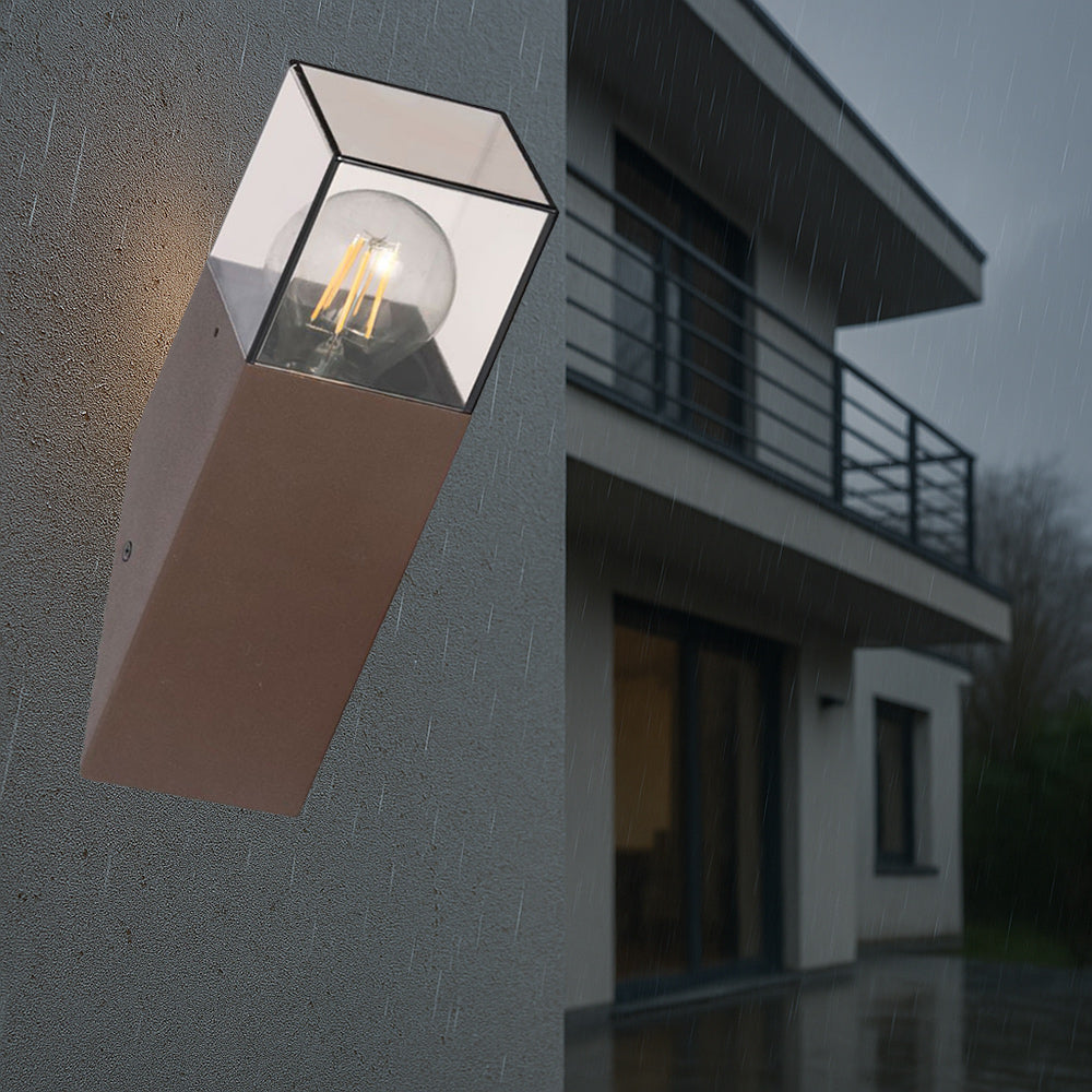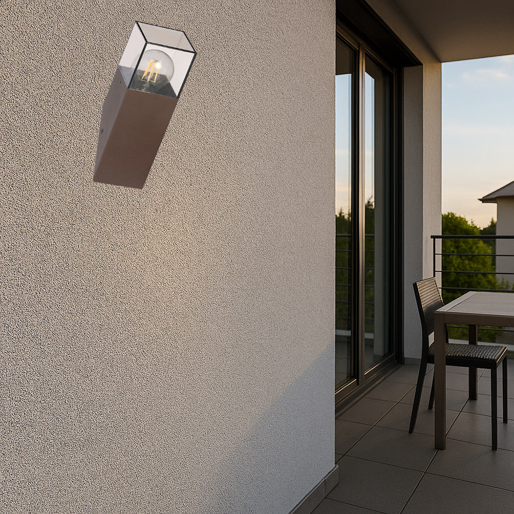 Applique da parete dal design moderno e raffinato. perfetto per valorizzare ambienti contemporanei con un tocco di eleganza discreta. La struttura è realizzata in alluminio verniciato marrone. resistente e durevole. mentre il diffusore in acrilico grigio fumé crea un effetto visivo sofisticato. lasciando intravedere la lampadina e donando alla luce un'atmosfera calda e accogliente. Il suo stile minimalista. arricchito da linee pulite e materiali di qualità. lo rende ideale per ingressi. terrazzi. balconi. corridoi o zone living. sia in contesti residenziali che professionali. Dotato di attacco E27. è compatibile con lampadine LED o tradizionali. permettendo una personalizzazione dell'intensità e della temperatura della luce (lampadina non inclusa). Il grado di protezione IP44 garantisce resistenza agli agenti atmosferici e agli spruzzi d'acqua. rendendolo perfetto anche per l'uso esterno. Un elemento luminoso che non è solo funzionale. ma anche decorativo: pensato per chi cerca un'illuminazione che parli di stile. qualità e attenzione ai dettagli.