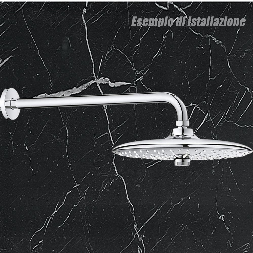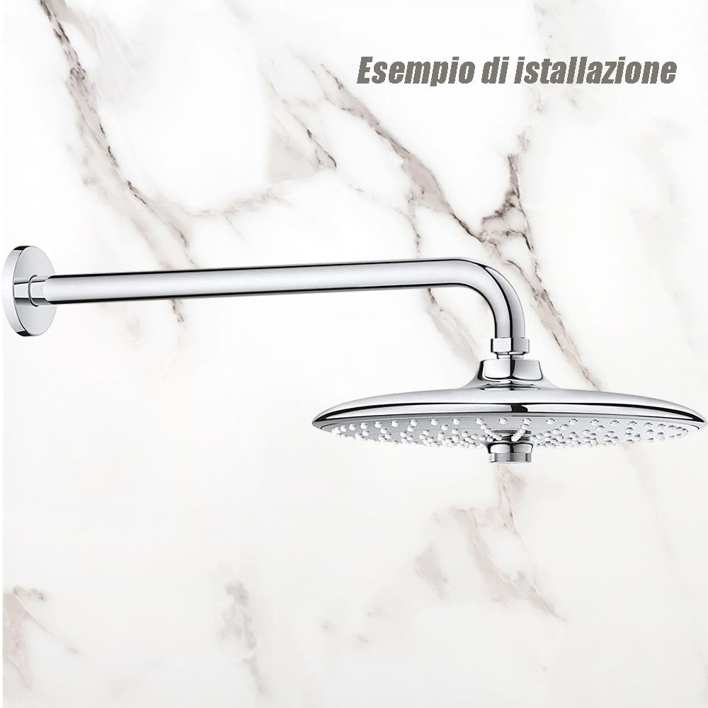 Questo tipo di braccio è progettato per offrire la massima versatilità e adattabilità nell'installazione del tuo soffione doccia. L'attacco standard lo rende compatibile con la maggior parte delle cabine doccia presenti sul mercato, semplificando notevolmente l'installazione. La forma e la lunghezza del braccio sono specificamente studiate per esaltare l'effetto rilassante e avvolgente dell'acqua che caratterizza i soffioni a cascata. La rosetta serve a nascondere il punto di fissaggio del braccio alla parete, conferendo un aspetto più pulito ed elegante all'installazione. Disponibile in tre misure (25, 30 e 35 cm), questo braccio ti permette di scegliere la lunghezza ideale in base allo spazio a disposizione e alle tue preferenze. Il diametro di 2 cm è compatibile con la maggior parte dei soffioni doccia in commercio. Attenzione il soffione non è incluso