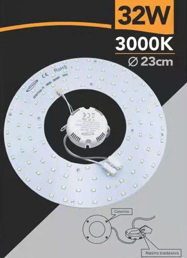 Stai cercando un modo semplice ed efficace per sostituire il vecchio neon circolare della tua plafoniera? Il nostro ricambio LED è la scelta ideale! Progettato per offrire un'illuminazione brillante, efficiente e durevole, questo prodotto è facile da installare e si adatta perfettamente a qualsiasi ambiente. Non è necessario chiamare un elettricista! Basta rimuovere il vecchio neon, lo starter e il reattore dalla plafoniera e inserire il nuovo modulo LED. I supporti magnetici assicurano un fissaggio sicuro alla base in alluminio. Con una potenza di 32 watt e un flusso luminoso di 3400 lumen, questa circolina LED consuma molta meno energia rispetto ai neon tradizionali, garantendo un notevole risparmio sulla bolletta elettrica. Con un angolo di fascio di 120°, il ricalibro LED illumina in modo uniforme l'intera area. Scegli la temperatura di colore che preferisci: luce fredda (6500K), calda (3000K) o naturale (4000K).
