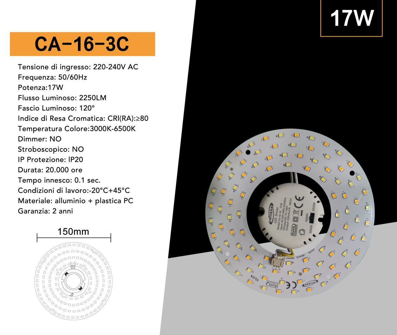 Circolina led modulo circolare 17 watt ricambio neon per plafoniere tecnologia CCT 3 in 1 6500k 3000k 4000k enzoled