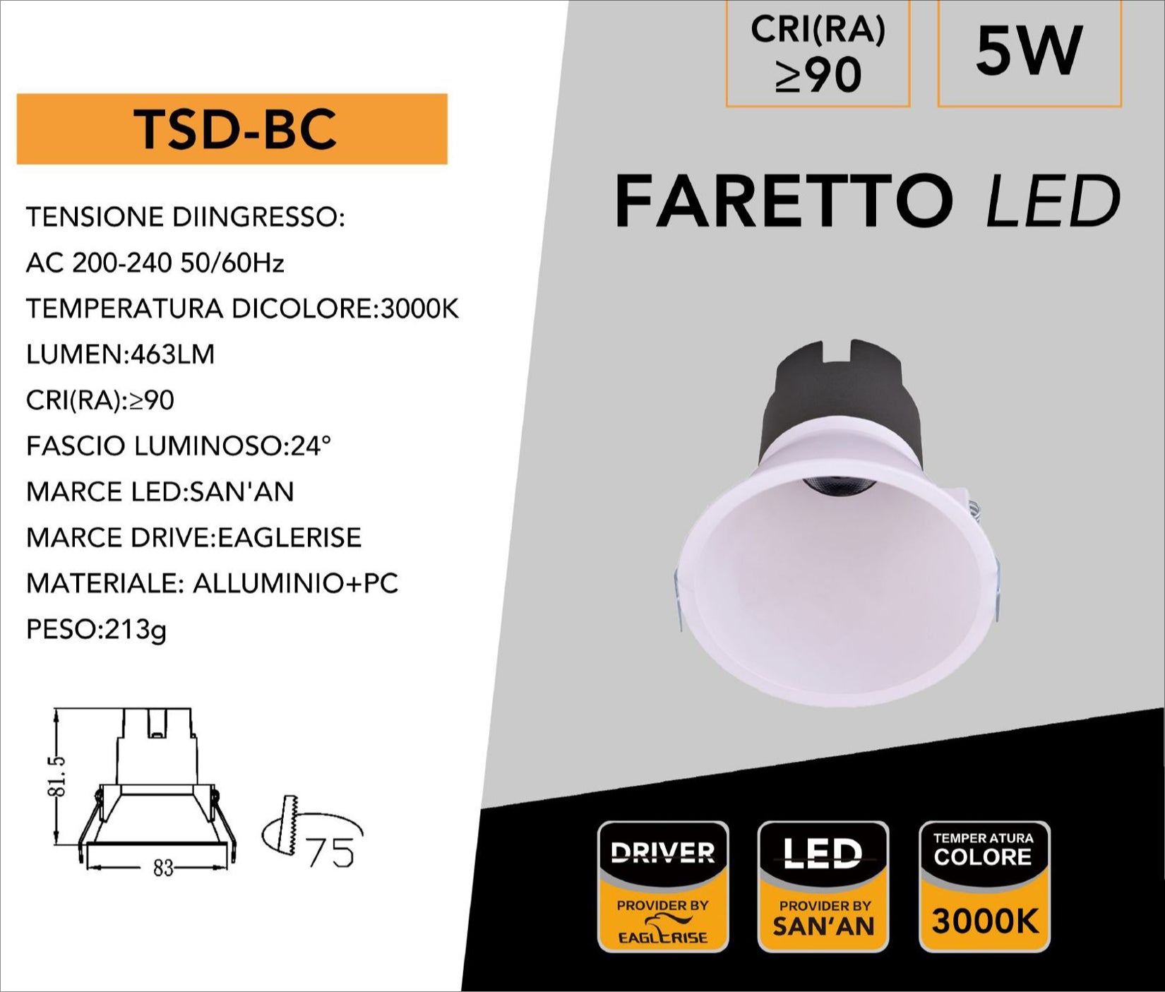 legante faretto da incasso effetto a scomparsa dotato di led integrati da 5 watt, realizzato in alluminio ideale per illuminare cucine moderne, ingressi, soggiorni, mensole, ripiani ed in tutti gli ambienti interni dove si vuole installare un prodotto dal design moderno che arreda ed illumina allo stesso tempo. Monta un diffusore con ottica simmetrica trasparente per una migliore diffusione della luce ha un'intensità luminosa di 487 lumen un angolo di luce di 24°. Dotato di alette a molla è adatto per l'incasso in soffitti di cartongesso, Viene fornito con driver integrato per il corretto funzionamento direttamente alla 240V. Disponibile in 3 tonalità di luce: 3000K luce calda; 6000K luce fredda e 4000K luce naturale