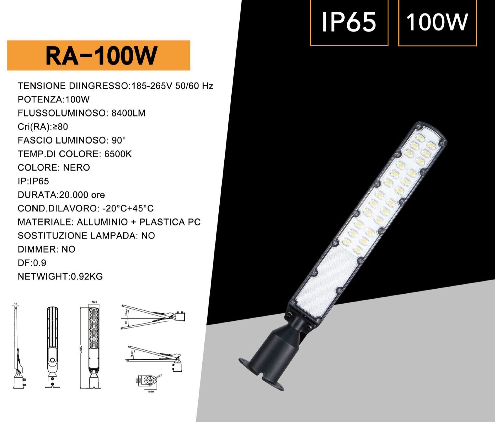 Illumina la tua strada con il lampione stradale ultra slim a led da 100 watt. Questo potente lampione offre un flusso luminoso di 8400 lumen e un ampio fascio luminoso di 90° a luce fredda 6500k, garantendo un'illuminazione ottimale. Con un'inclinazione di 90°, questo lampione è progettato per illuminare in modo uniforme e senza zone d'ombra. La sua robusta costruzione con grado di protezione IP65 lo rende resistente alle intemperie e adatto per l'uso esterno. Semplice da installare e con un design elegante, questo lampione stradale a led è la soluzione perfetta per illuminare viali, cortili o aree di parcheggio con un'illuminazione potente e uniforme.