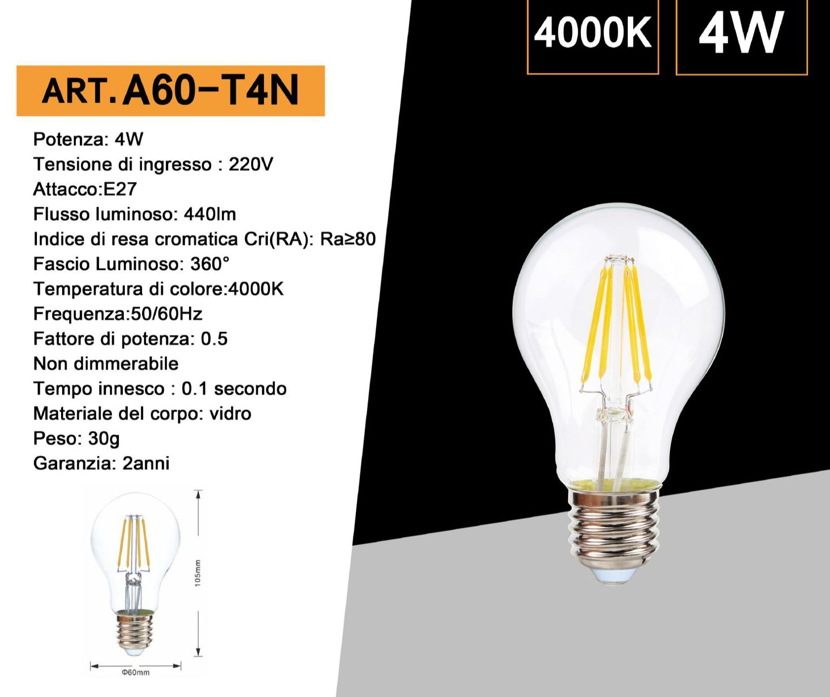 Lampadina led a filamento attacco E27 4 watt lampada in vetro luce fredda calda naturale enzoled