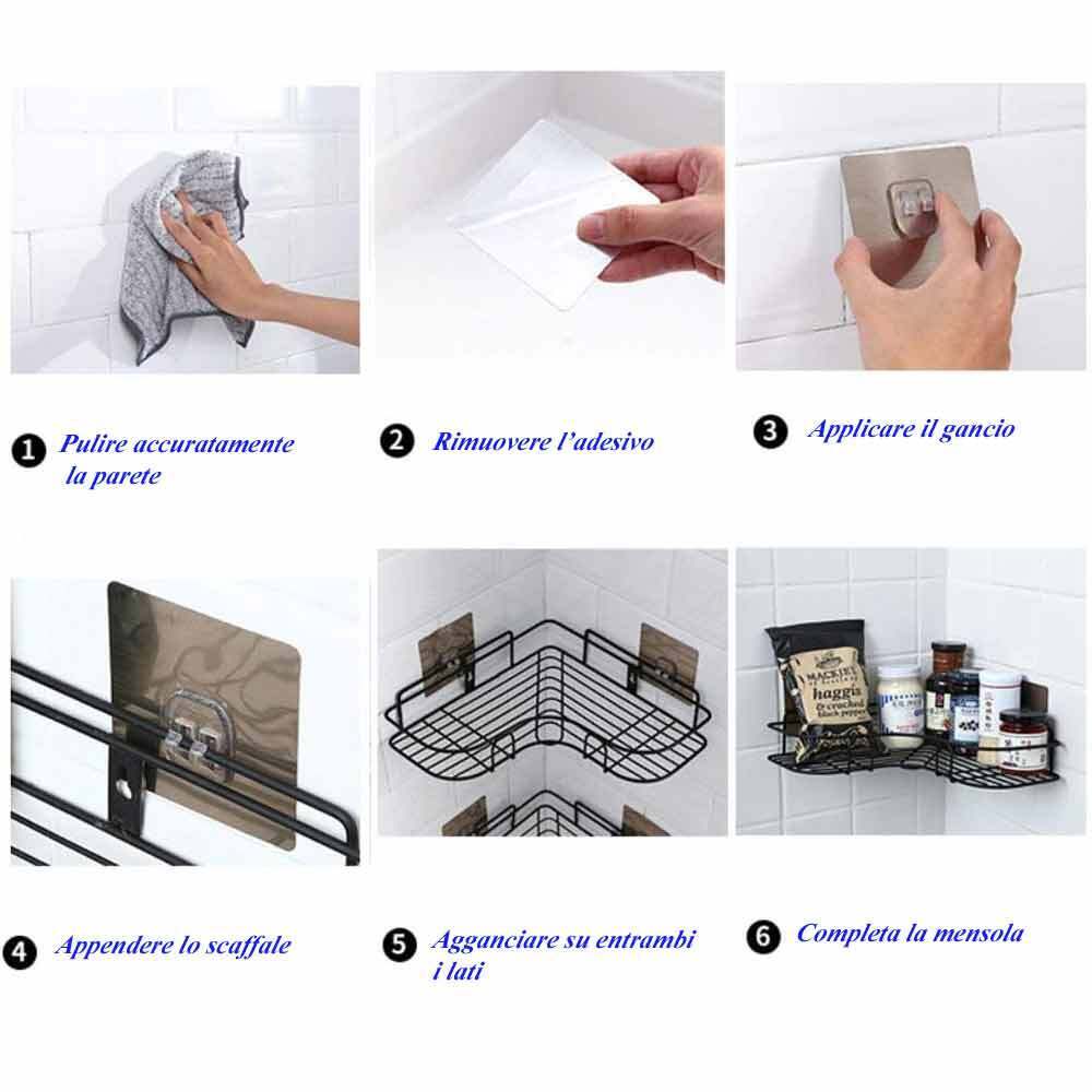 Mensola angolare adesiva senza fori in metallo da parete per bagno doccia portaoggetti sapone enzoled