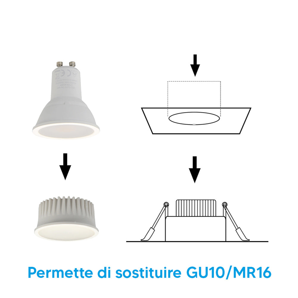 Modulo led 6W sostituzione per faretti GU10/MR16 da incasso CCT opaco