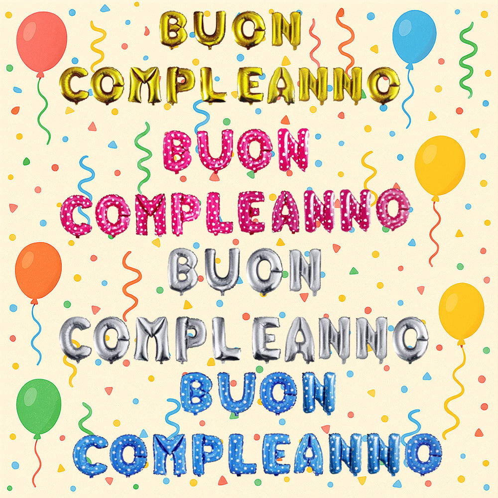 Rendi ogni celebrazione un evento memorabile con i nostri palloncini decorativi con la scritta BUON COMPLEANNO ! Perfetti per aggiungere un tocco di allegria e un'atmosfera festosa. questi palloncini sono l'ideale per feste di compleanno. per festeggiata in grande stile. La confezione include 14 palloncini. uno per ciascuna lettera. permettendoti di formare la frase per intero e posizionarla come desideri. Dotato di una pratica cannuccia che ti consente di gonfiarli velocemente e senza sforzo. Disponibili in una paletta di colori vivaci ed eleganti: Rosa. Blu. Oro e Argento. potrai scegliere la tonalità che meglio si adatta al tema della tua festa o ai tuoi gusti. Con dimensioni generose di circa 35 cm di larghezza. 25 cm di lunghezza e 10 cm di spessore per ciascuna lettera.