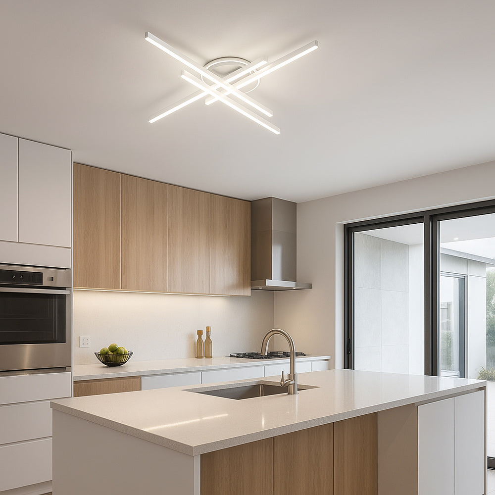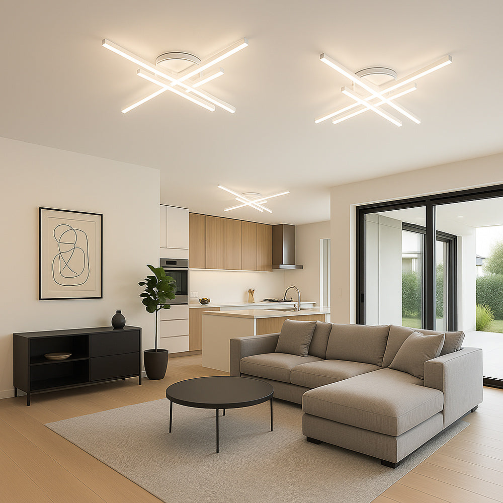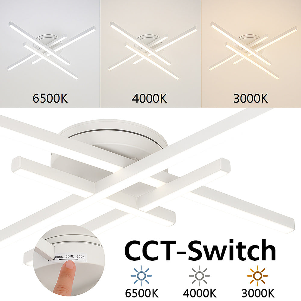 Questa plafoniera si distingue per il suo design moderno e innovativo, composto da elementi lineari che si intersecano in modo armonioso, creando un effetto visivo dinamico e accattivante. La struttura minimalista e il colore neutro si adattano a una vasta gamma di stili d'arredo, dal minimalista allo scandinavo, aggiungendo un tocco di raffinatezza discreta e contemporanea al tuo soffitto. Con una potenza di 45 Watt, garantisce un'illuminazione intensa e uniforme grazie a un flusso luminoso di 3600 Lumen. Progettata per una diffusione ottimale della luce, la plafoniera vanta un ampio angolo di illuminazione di 240°. Grazie all'avanzata tecnologia CCT, hai il controllo totale sull'atmosfera del tuo ambiente. Con un semplice tasto posizionato sul driver, puoi facilmente selezionare la temperatura di colore della luce che preferisci: Luce Fredda, Luce Calda e Luce Naturale