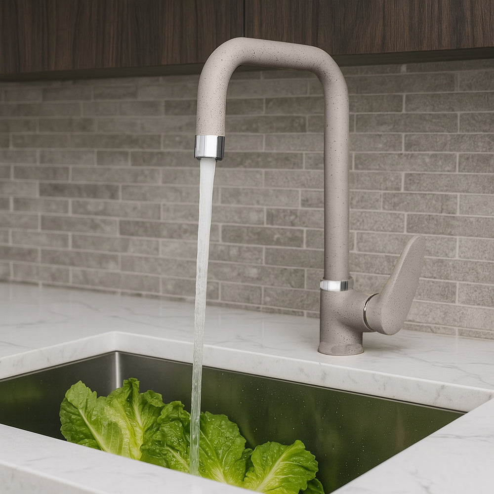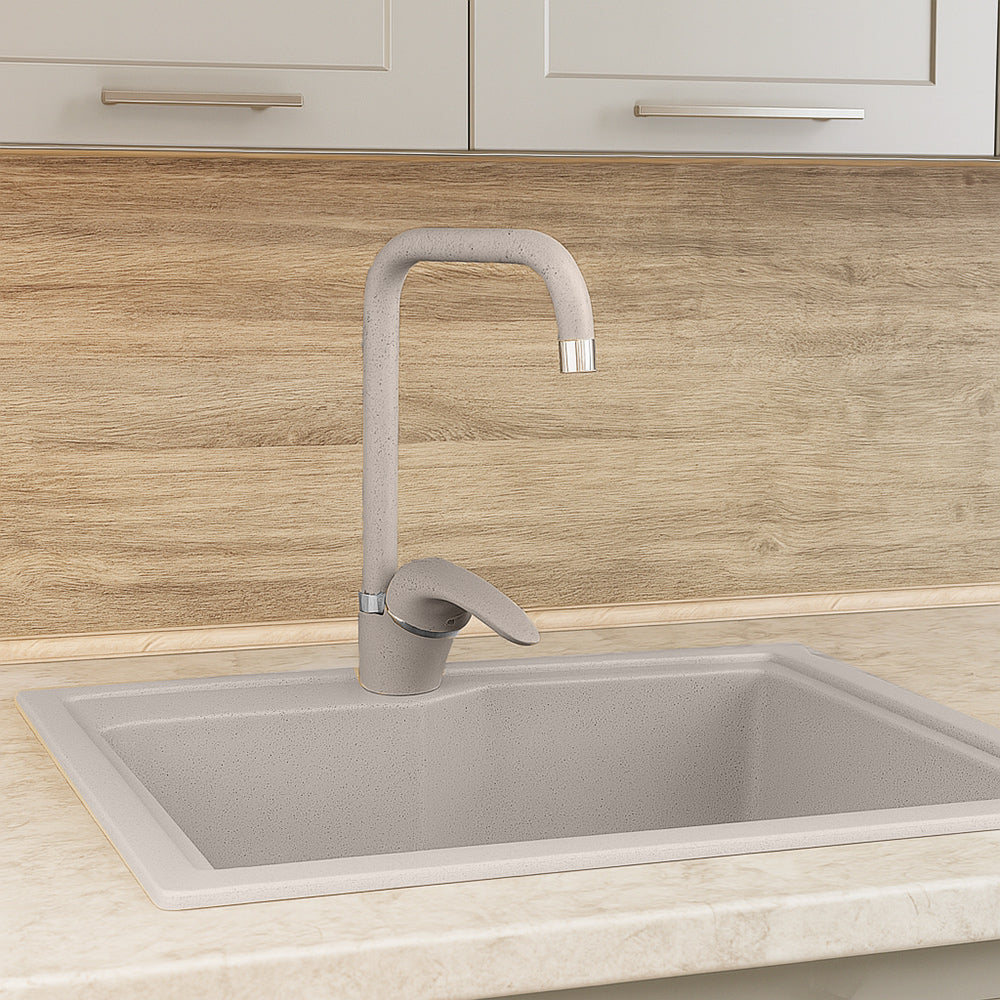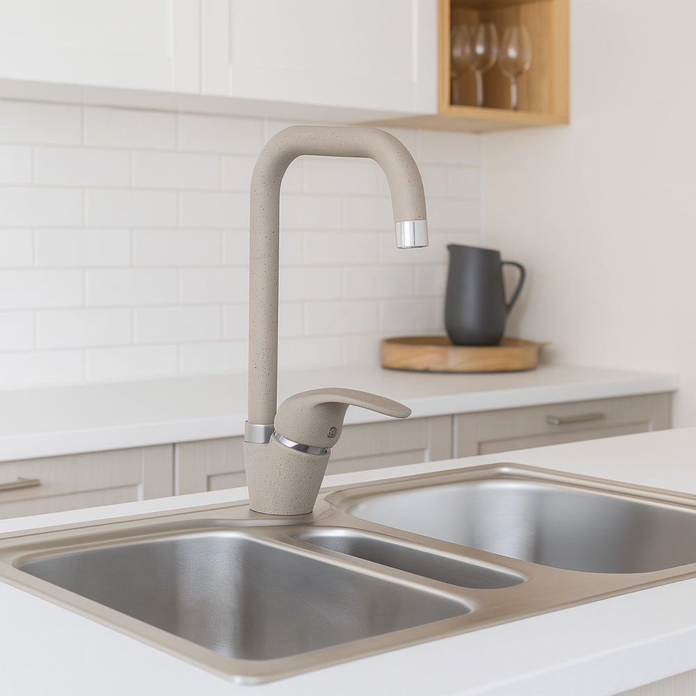 Pensato per chi vive la cucina ogni giorno. questo rubinetto a canna alta quadrata unisce massima praticità e affidabilità duratura. Il beccuccio orientabile consente un utilizzo versatile su lavelli a una o due vasche. rendendo ogni gesto più fluido e naturale. Il miscelatore monocomando garantisce un controllo preciso della temperatura e del flusso d'acqua. semplificando le attività quotidiane. La finitura Avena. con il suo tono caldo e neutro. si adatta armoniosamente a qualsiasi stile d'arredo: dal moderno minimalista. al rustico accogliente. fino al classico intramontabile. I dettagli cromati aggiungono un tocco di raffinatezza. valorizzando l'ambiente cucina con discreta eleganza. Fornito completo di due flessibili. è pronto all'uso fin da subito: installazione rapida. zero complicazioni. Attenzione: il colore Avena potrebbe risultare leggermente più scuro rispetto a quanto appare in foto. a seconda della luce e del dispositivo utilizzato per la visualizzazione.