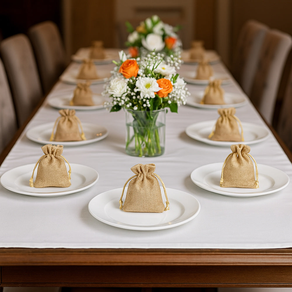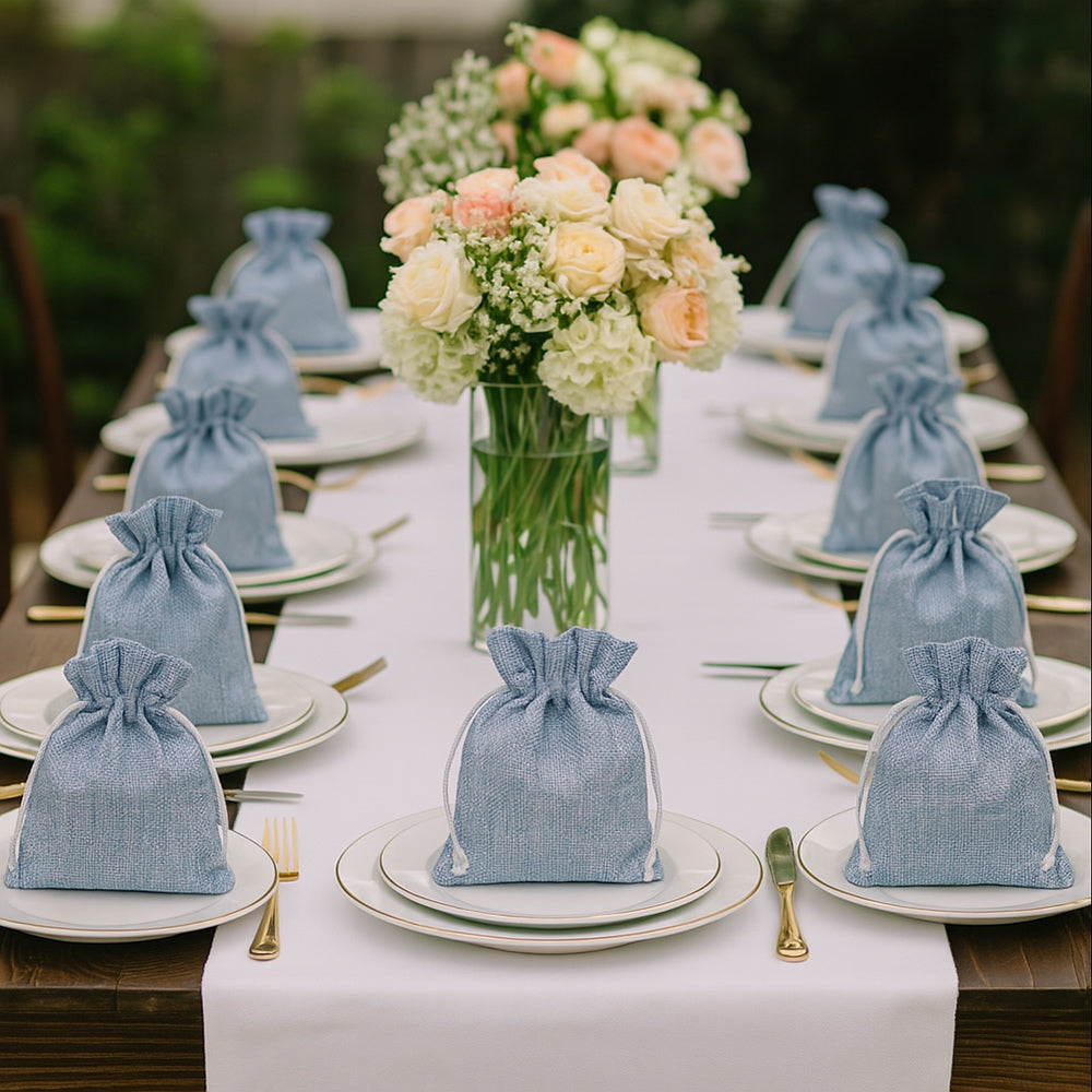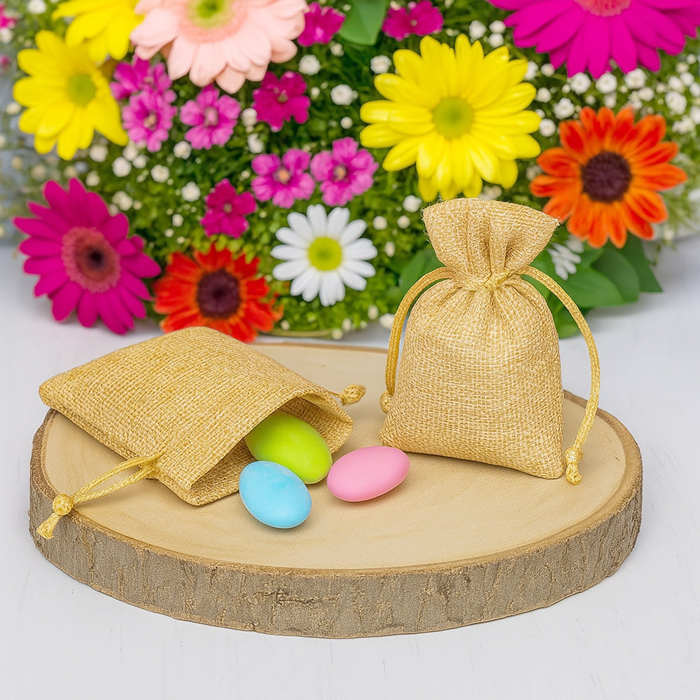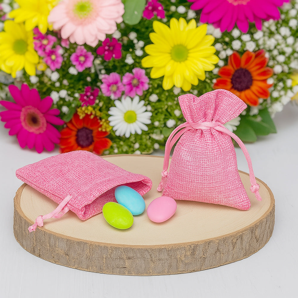 Un tocco rustico e raffinato per i tuoi momenti speciali. Questo set comprende 12 sacchetti in juta. impreziositi da un morbido cordoncino in tessuto che ne facilita la chiusura. Perfetti per confezionare piccoli regali. bomboniere o portaconfetti. aggiungono calore e personalità a ogni occasione. Ideali per matrimoni. battesimi. comunioni. feste o semplicemente per rendere unico un pensiero. All'interno puoi inserire confetti. caramelle. piccoli oggetti o gioielli. creando un effetto sorpresa elegante e curato. Disponibili in tre delicate tonalità Rosa. Celeste e Beige si adattano con armonia a ogni stile e palette decorativa.