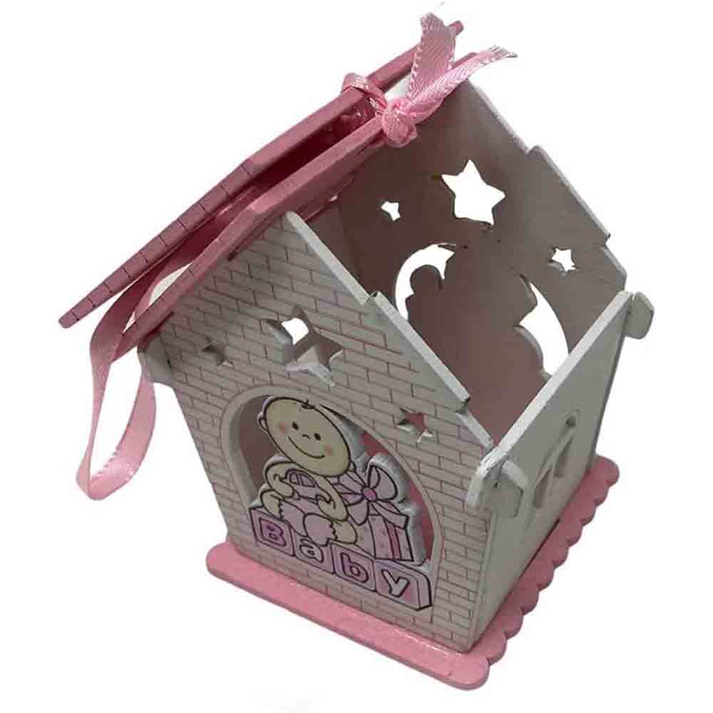 Un set incantevole di 12 delicate casette in legno, perfette per celebrare l'arrivo di un nuovo membro della famiglia. Ciascuna casetta è disponibile in due soffici tonalità: rosa per le principessine e celeste per i piccoli principi. La parte anteriore e posteriore di ogni casetta è decorata con un tenero neonato circondato da doni, un'immagine che evoca gioia e felicità. Il tetto della casetta si apre, rivelando uno spazio interno perfetto per contenere confetti colorati o piccole caramelle. Un tocco dolce e goloso per i tuoi ospiti. Lateralmente, le finestre aggiungono un tocco di luminosità e delicatezza. Inoltre, il nastrino sul tetto permette di appendere le casette, trasformandole in originali decorazioni per la cameretta del bambino o per la tavola del buffet.