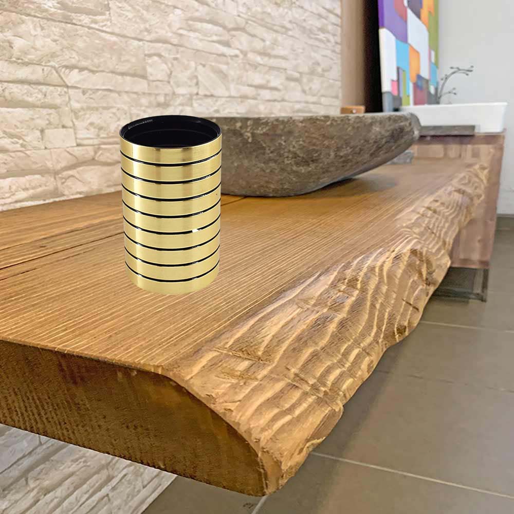 Questo set da 3 accessori per bagno in oro con righe nere è ideale per il tuo bagno moderno o tradizionale. Oltre ad aggiungere un tocco di classe all'arredamento del tuo bagno, il set comprende un dispenser di sapone, un bicchiere porta spazzolini e un piattino porta sapone, per un'organizzazione elegante e funzionale.