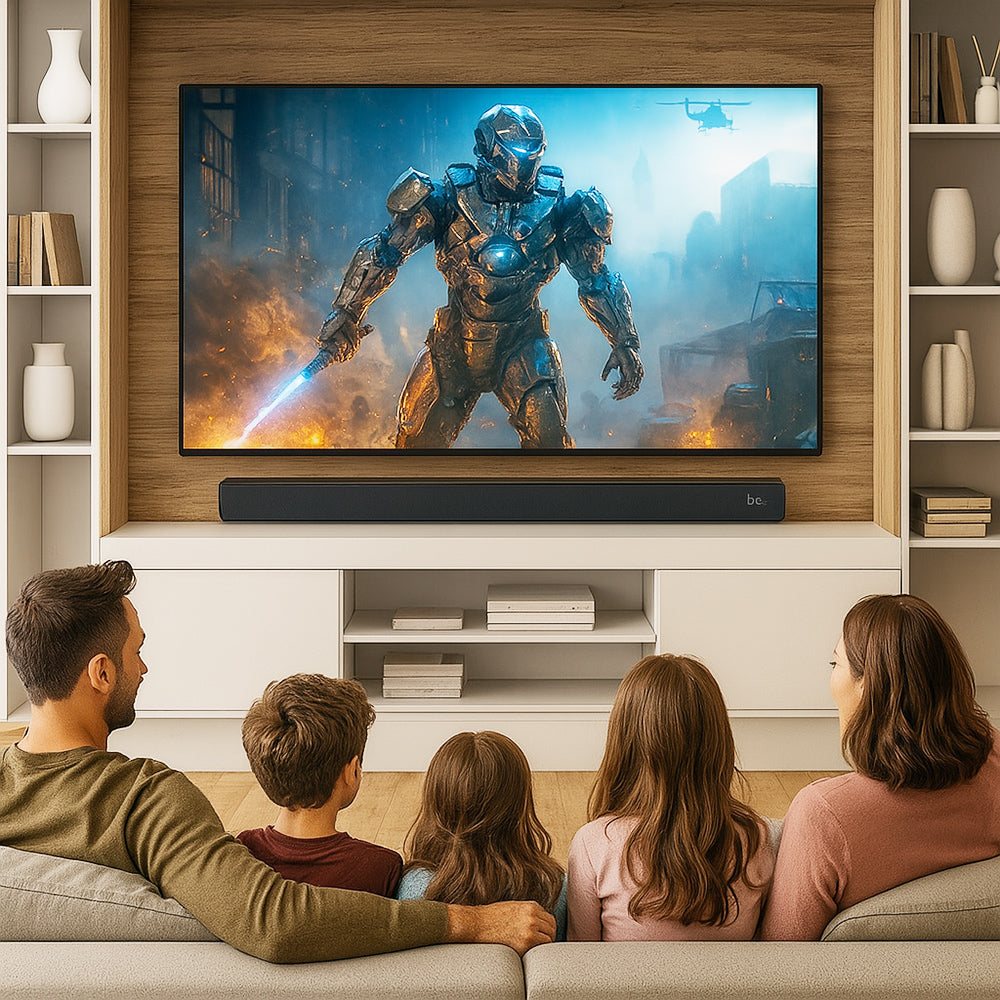 La soundbar bluetooth è la soluzione ideale per trasformare ogni momento di intrattenimento in un'esperienza immersiva e coinvolgente. Che tu stia guardando un film sul televisore. ascoltando la tua musica preferita da smartphone o tablet. o vivendo l'azione dei tuoi videogiochi. questa soundbar ti regalerà un suono potente. cristallino e avvolgente. capace di valorizzare ogni dettaglio. Grazie alla connessione bluetooth puoi collegare i tuoi dispositivi in modo semplice e immediato. ma se preferisci un collegamento tradizionale hai a disposizione ingressi HDMI e ottico. oltre a una porta USB e un ingresso AUX che garantiscono la massima compatibilità con diverse sorgenti audio. La potenza complessiva raggiunge i 180 watt in output P.M.P.O. e i 60 watt in output R.M.S.. un equilibrio perfetto tra volume e nitidezza che riempie la stanza senza distorsioni. rendendo ogni dialogo più chiaro e ogni nota più intensa. Il design moderno e versatile permette di posizionarla comodamente su un mobile oppure di fissarla a parete. adattandosi con eleganza a qualsiasi ambiente domestico. In più. grazie al telecomando incluso. puoi gestire la soundbar a distanza in totale comodità. regolando volume. modalità e impostazioni senza doverti alzare. Questa soundbar non è solo un accessorio tecnologico. ma un vero e proprio alleato per chi desidera vivere film. musica e giochi con un'intensità nuova. unendo praticità. stile e prestazioni di alto livello.