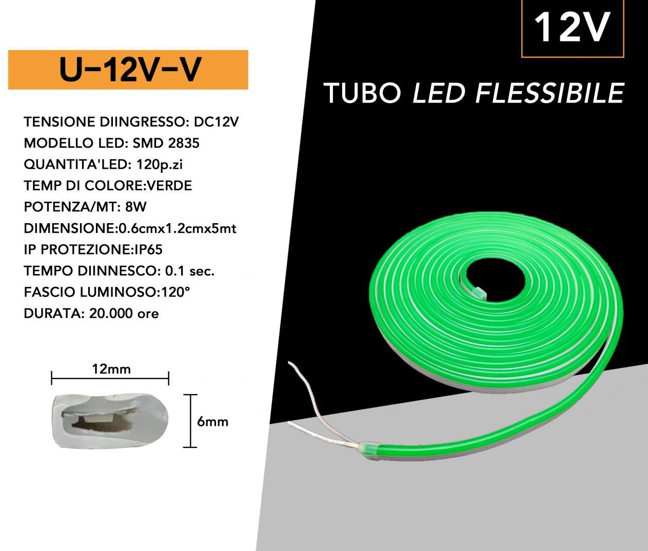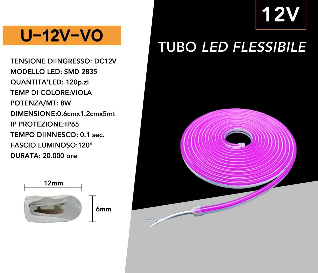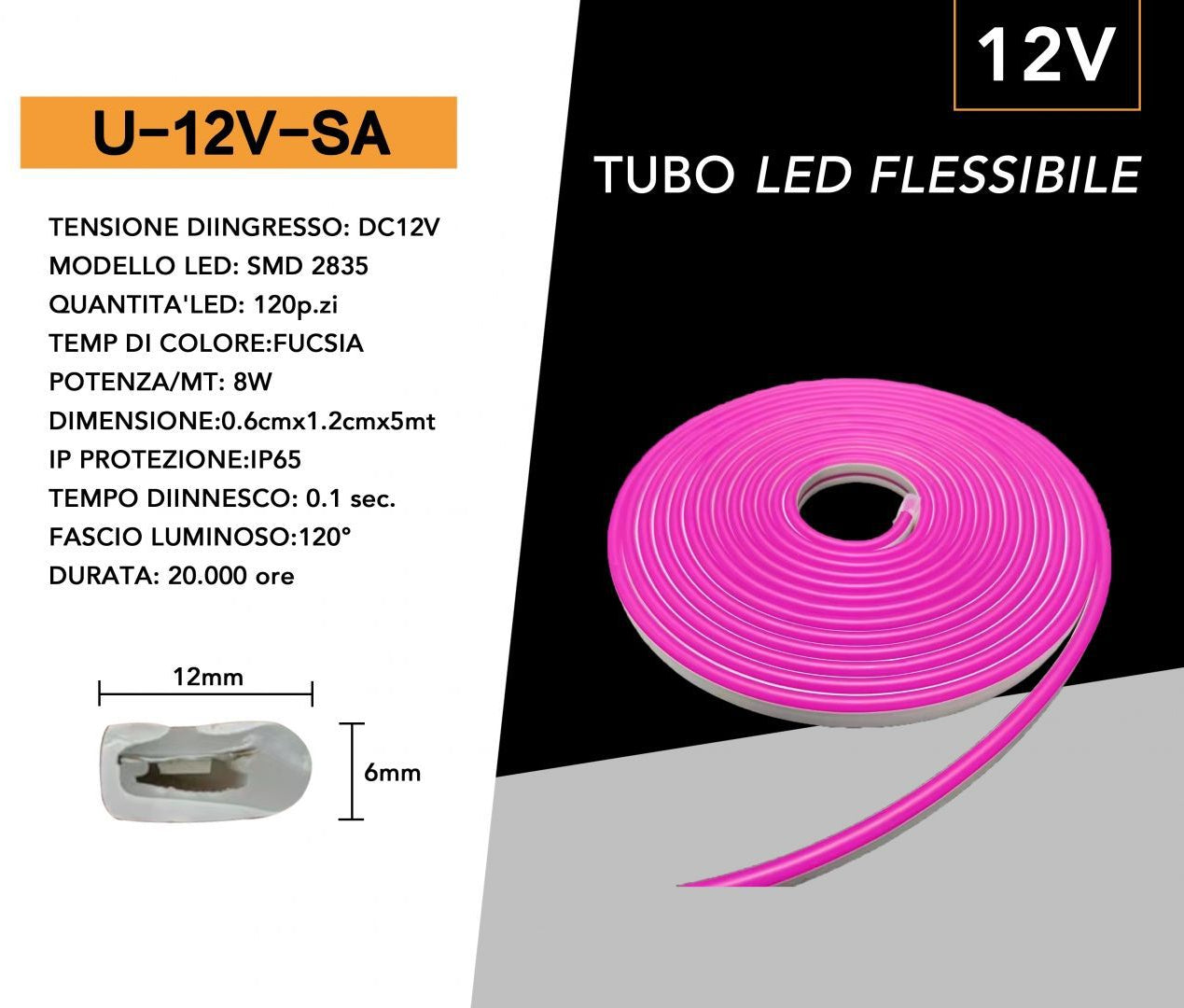 Striscia led utile per creare decorazioni come scritte, disegni, cartelli pubblicitario ecc. Creata in morbida gomma flessibile si presta per qualunque esigenza, potrete tranquillamente usarla ovunque vogliate poiché è resistente all'acqua e quindi anche lavabile. La striscia è dotata di 600 led e può essere collegata direttamente tramite un normale alimentatore 12 VDC (non incluso) ad alta efficienza energetica con potenza totale di 40 Watt. la luce emessa è diffusa con un angolo di 120° con un indice di resa cromatica maggiore di 80 RA>80. Viene fornita in bobina da 5 metri inoltre è possibile tagliare la striscia ogni 3 led secondo le proprie esigenze. Disponibile a luce. Fredda, Calda, Naturale, Blu, Verde, Gialla, Rossa, Celeste, Fucsia, Arancione e Viola