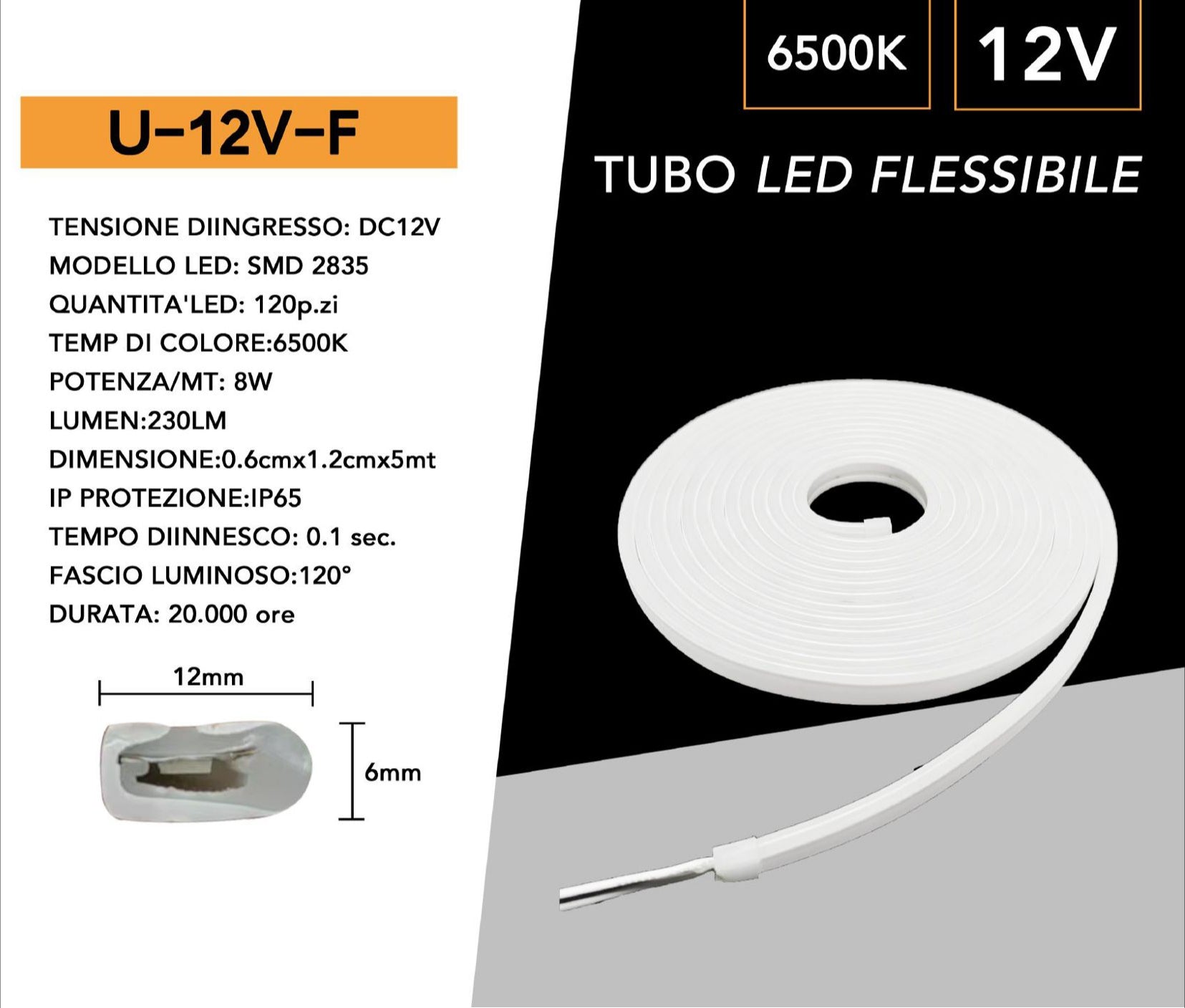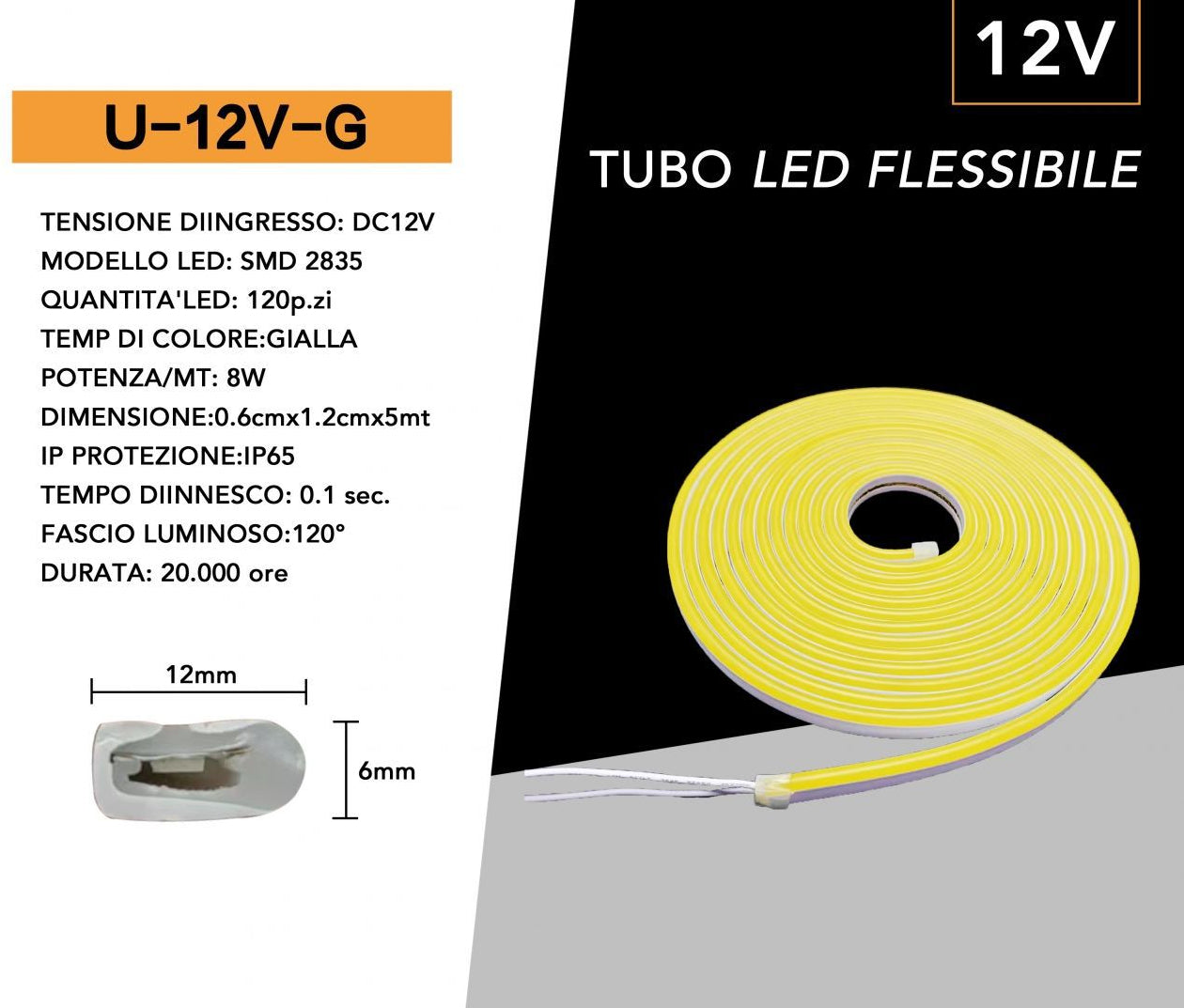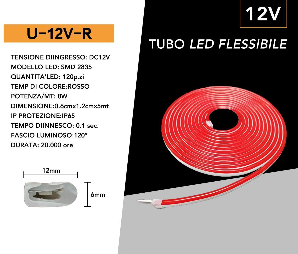 Striscia led utile per creare decorazioni come scritte, disegni, cartelli pubblicitario ecc. Creata in morbida gomma flessibile si presta per qualunque esigenza, potrete tranquillamente usarla ovunque vogliate poiché è resistente all'acqua e quindi anche lavabile. La striscia è dotata di 600 led e può essere collegata direttamente tramite un normale alimentatore 12 VDC (non incluso) ad alta efficienza energetica con potenza totale di 40 Watt. la luce emessa è diffusa con un angolo di 120° con un indice di resa cromatica maggiore di 80 RA>80. Viene fornita in bobina da 5 metri inoltre è possibile tagliare la striscia ogni 3 led secondo le proprie esigenze. Disponibile a luce. Fredda, Calda, Naturale, Blu, Verde, Gialla, Rossa, Celeste, Fucsia, Arancione e Viola