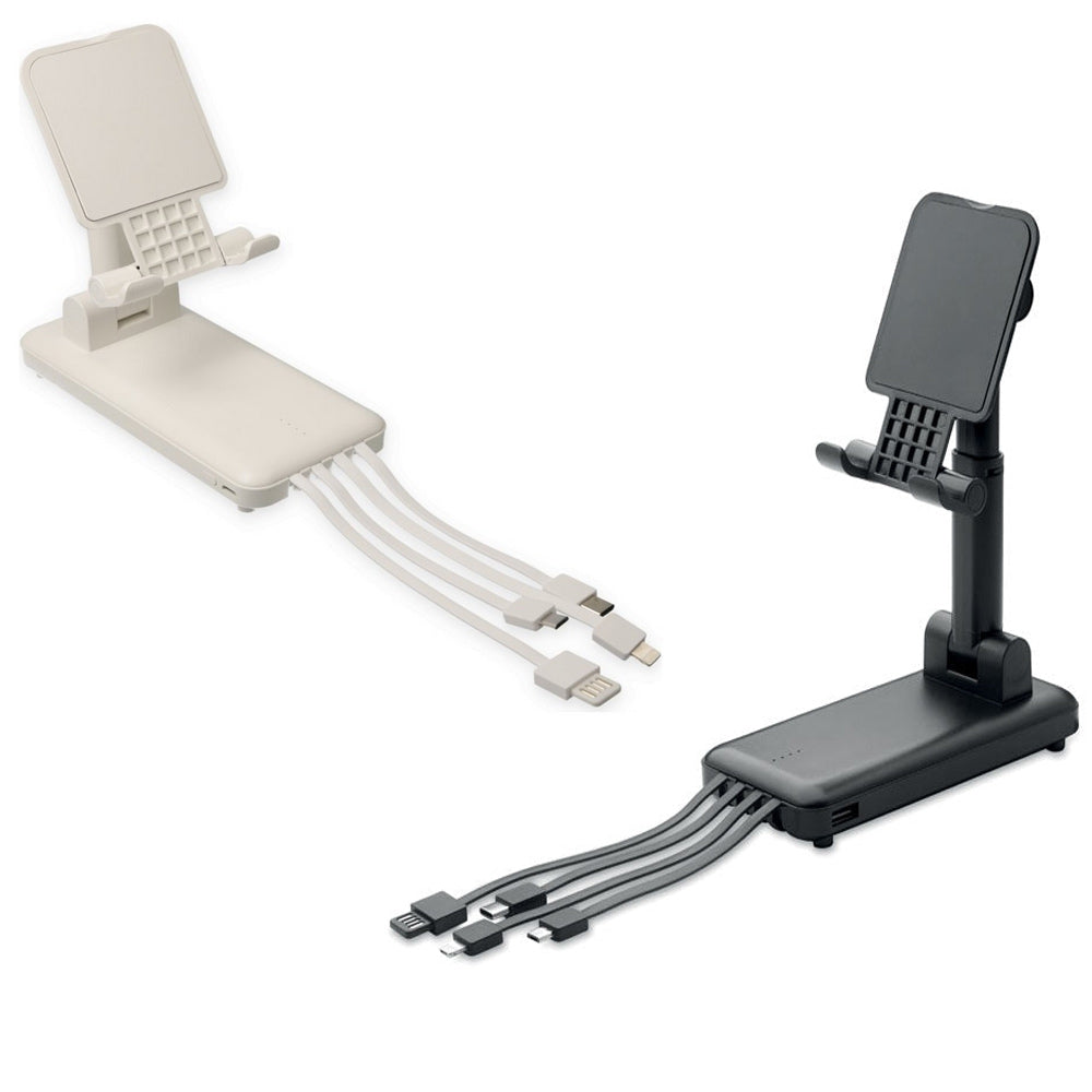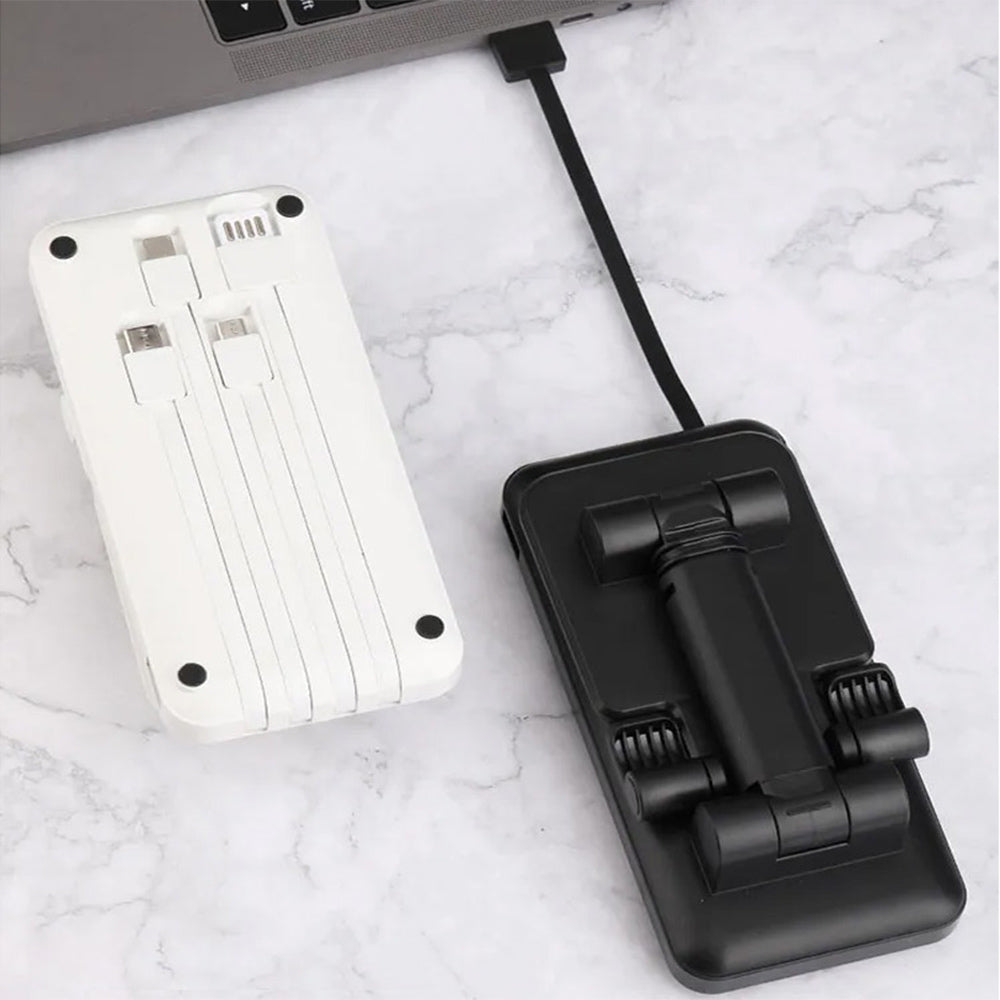 Porta l'energia sempre con te grazie a questo rivoluzionario power bank da 20.000 mAh. che unisce potenza e praticità in un unico dispositivo multifunzionale. Oltre a garantire una ricarica rapida e universale. questo power bank funge anche da supporto regolabile per telefono. rendendolo ideale per l'uso su scrivanie o tavoli. Il suo design pieghevole ed estensibile offre la possibilità di regolare l'angolo di visualizzazione. rendendolo compatibile con qualsiasi smartphone o altri dispositivi. È perfetto per videochiamate. streaming o per l'uso mentre i tuoi dispositivi si ricaricano. Con 4 cavetti integrati: Type-C. Lightning. USB e Micro USB e la capacità di caricare fino a 3 dispositivi contemporaneamente. questo power bank ti permette di rimanere sempre connesso e produttivo. ovunque tu sia. Design elegante disponibile in Bianco o Nero. spedito secondo disponibilità di magazzino.