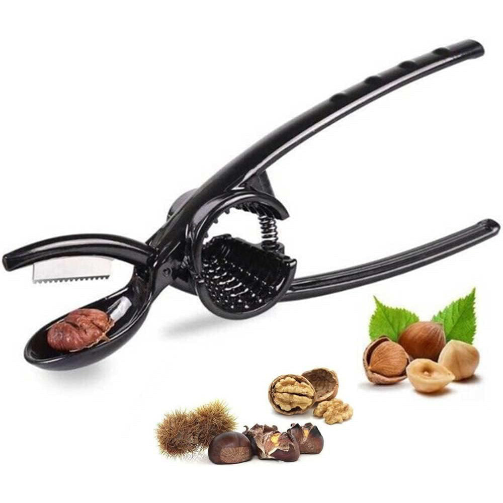 Taglia castagne e schiaccianoci conico. due funzioni racchiuse in un unico strumento pratico e resistente. Realizzato in metallo solido. è pensato per semplificare ogni gesto in cucina. La pinza con lama in acciaio incide le castagne con precisione. facilitando la cottura e riducendo il rischio di rotture. Al centro. lo schiaccianoci conico si adatta a diverse dimensioni di frutta secca. garantendo una presa sicura e una rottura controllata. Il design compatto ed ergonomico lo rende ideale per l'uso quotidiano. perfetto per chi cerca efficienza e robustezza in un solo accessorio. Un alleato indispensabile per la stagione autunnale e per chi ama la praticità senza rinunciare alla qualità.