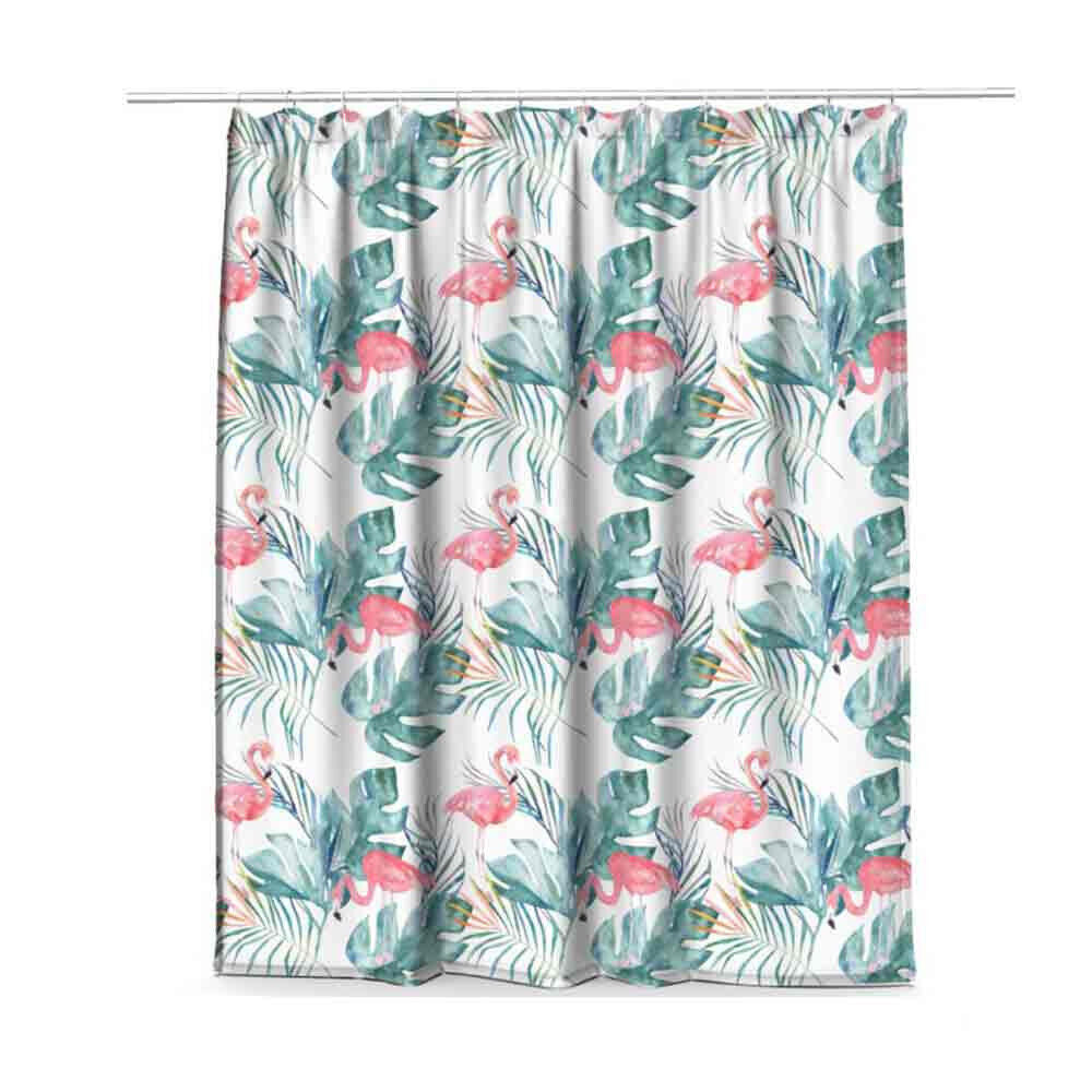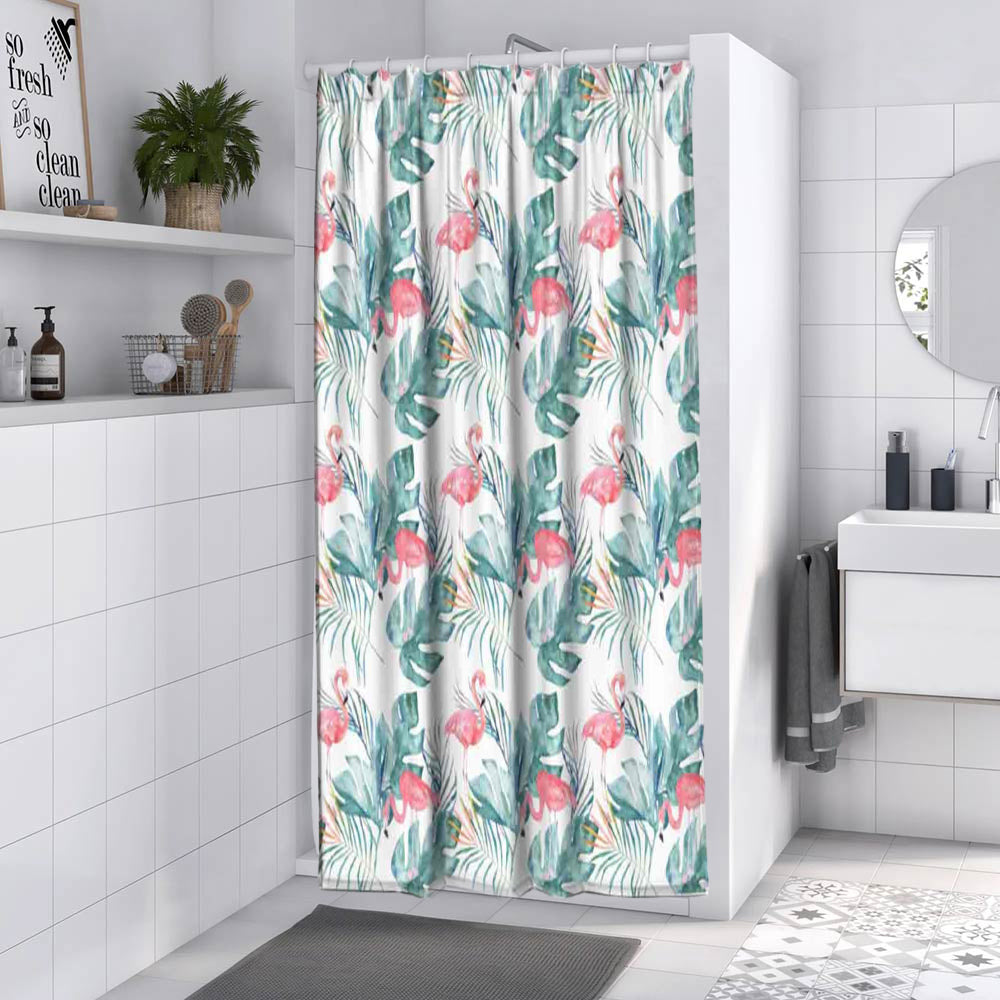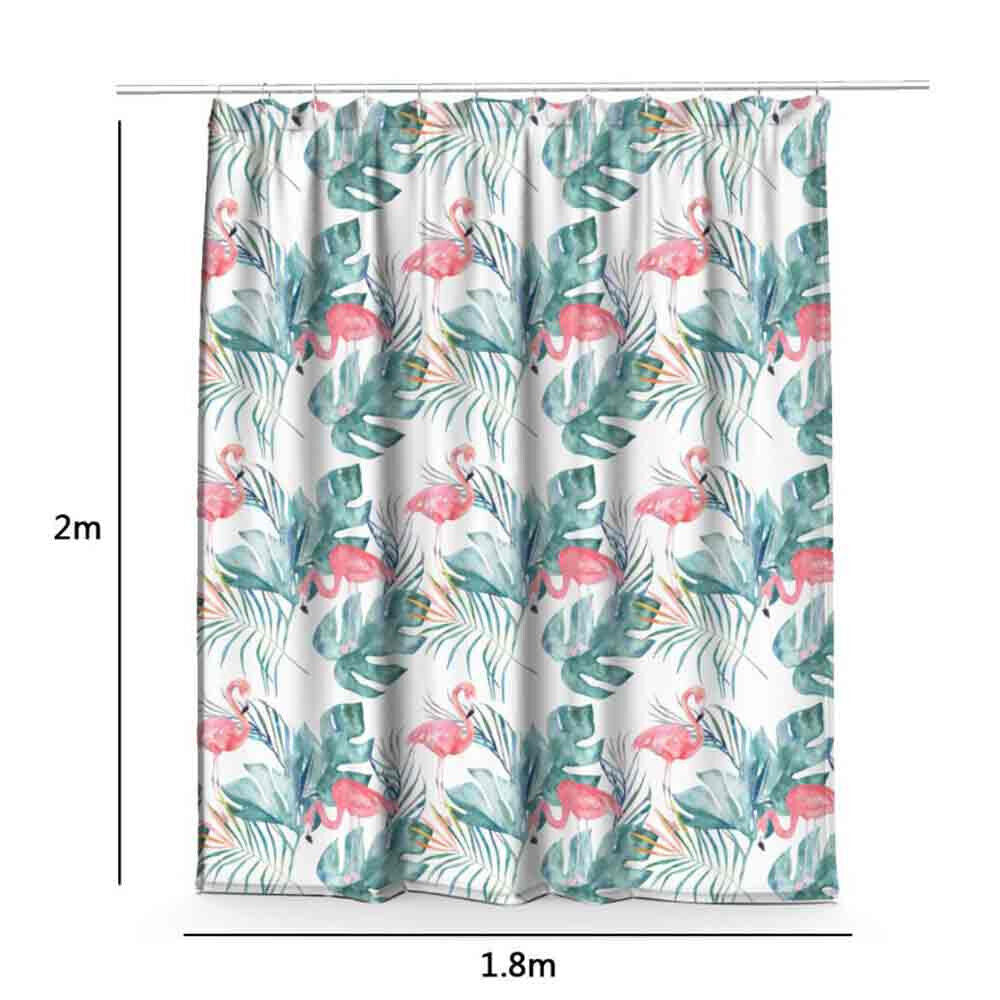 Tenda moderna per doccia vasca da bagno impermeabile pvc 12 ganci decorazione foglie e fenicotteri 200x180 cm enzoled